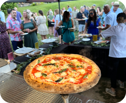Our team will arrive at your event 1-2 hours advance to set up and fire up our blazing hot oven. Once our oven is hot, it stays hot, and each pizza cooks in just a couple of minutes.